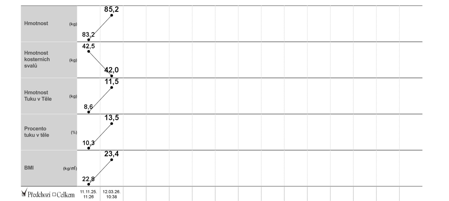 Trochu jsem přibral na váze, mám 86,1 kg. Přes zimu +4kg.