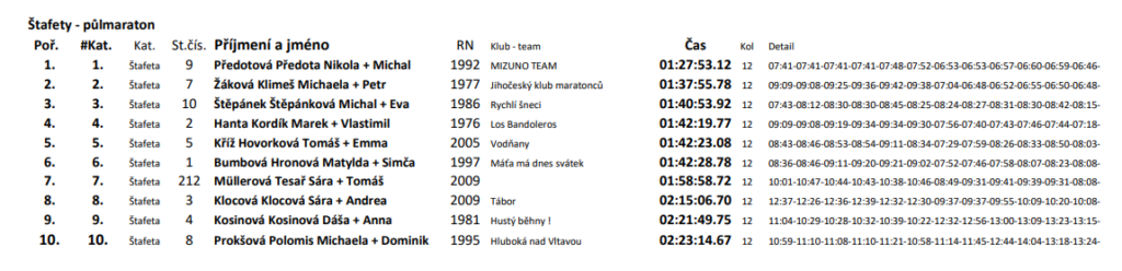 Štafetový půlmaraton T2 běhy ČB 14.3.2026 – 2. místo