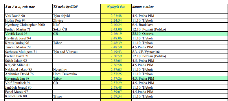 Podle statistik Jihočeského klubu maratonců Míry Šimka zaběhlo loni maraton pod tři hodiny 19 Jihočechů. Jsem tam taky s časem 2:59:54. Neskutečné.