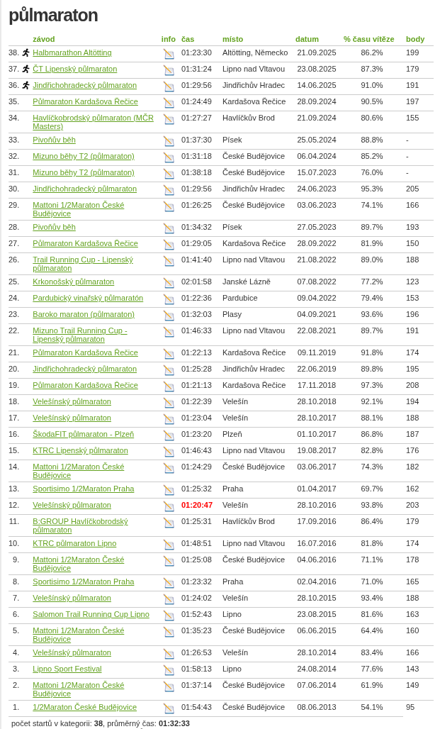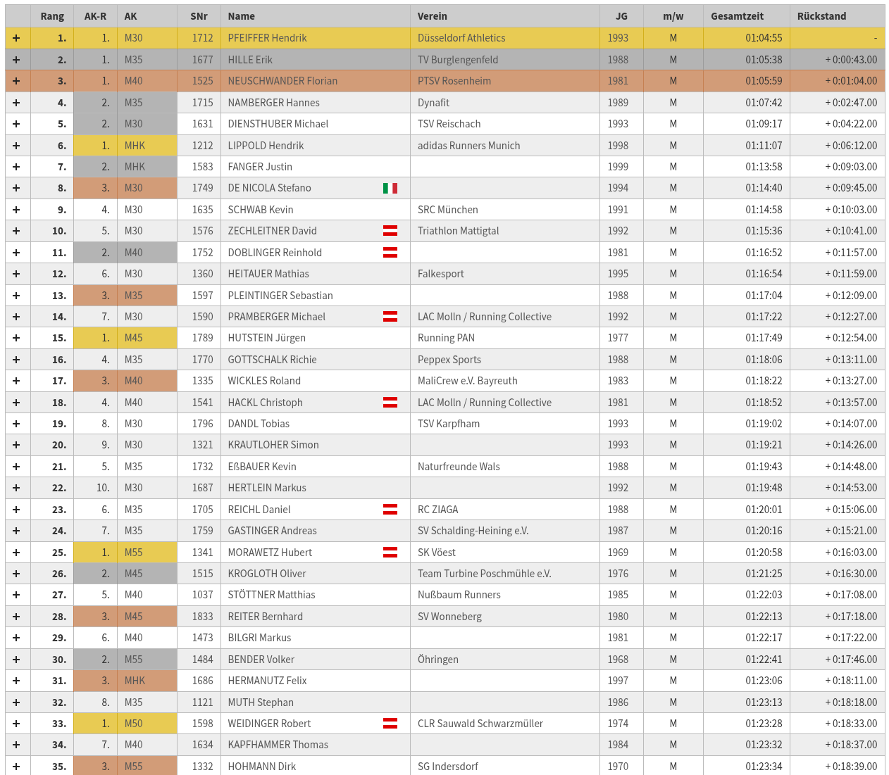 Tak jdu do toho. V neděli půlmaraton, první letošní závod. Na startovce půlmaratonu je 861 lidí. Já tam mám v M45 konkurenci Reinhold Doblinger loni 1:16:52, Jürgen Hutstein loni 1:17:49 a Oliver Krogloth loni 1:21:25.