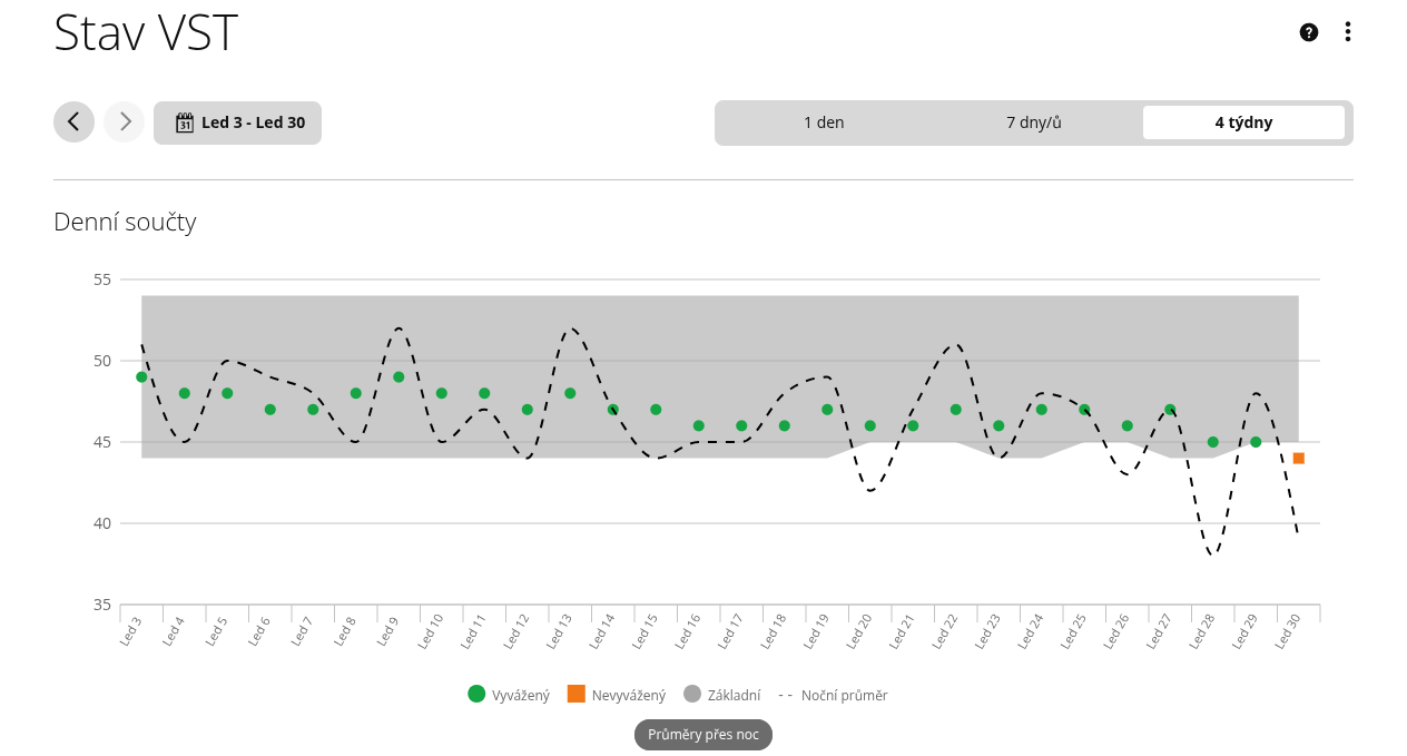 Variabilita srdečního tepu mimo rozsah. Nervový systém je unavený, jsem přetažený. Brajgl mi tam udělal ten úterní noční alkohol a čtvrteční posilka večer. Když nepiju a neposiluju, tak je VST vyvážené 😀