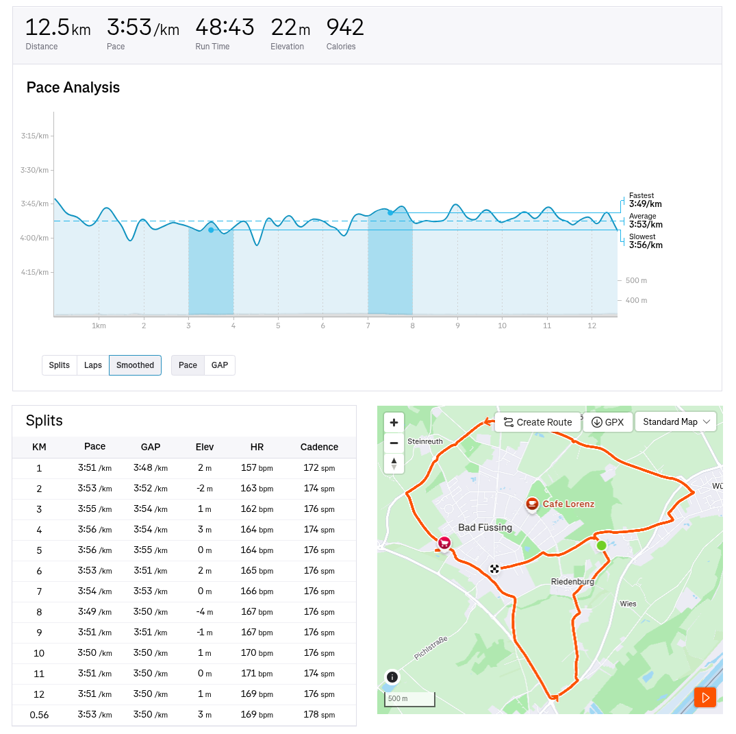 Na neděli to vypadá u mě zatím na půlmaraton, ale klucí chtějí dát celý maraton a mě to děsně moc láká běžet s nima, i když je to totální kravina 😀 Láká mě překonat čas 1:23:30 3:57/km z Altottingu, podmínky budou ideální (teplota kolem nuly narozdíl od 26˚C). Trať v Bad Fussingu je rychlá, rovinatá, certifikovaná. A v případě zaběhnutí cílového času by tam byla i šance na bednu v M45, loni stačil čas 1:22, předloni 1:24. Sice je to s ohledem na můj výpadek kvality v posledních dvou týdnech sci-fi, ale před tím výpadkem jsem si věřil i na lepší čas, tak proč to nezkusit.