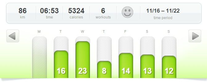 Celkem 3. týden 86 km. Potřetí v řadě rekord v naběhané kilometráži. Padám sice na držku, ale ustál jsem to. Poprvé jsem zkusil běhat 6 dní v týdnu, jinak jsem dával max. 5..
