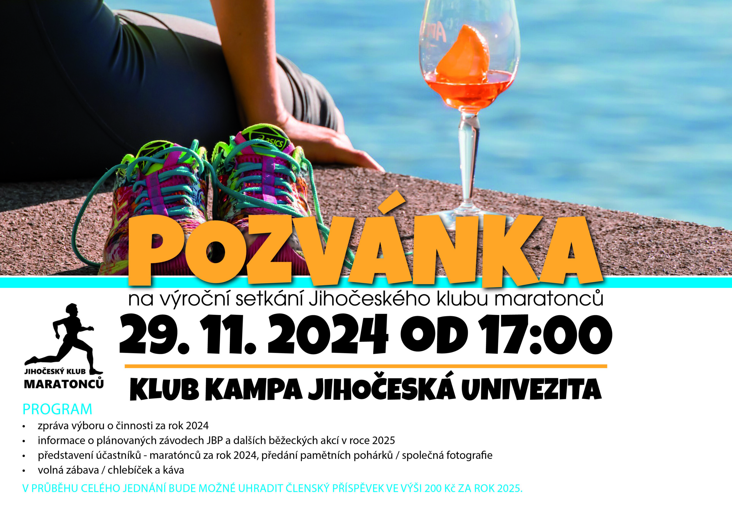 Zaplacení členského příspěvku bylo odměněno chlebíčkem a poukázkou na nápoj. Po zprávě o činnosti klubu od Míry a Martina, představení sponzorů následovalo představení členů, každý řekl, co a kde běžel nebo běžela a dostal pohárek. Ke koupi byla členská trička.